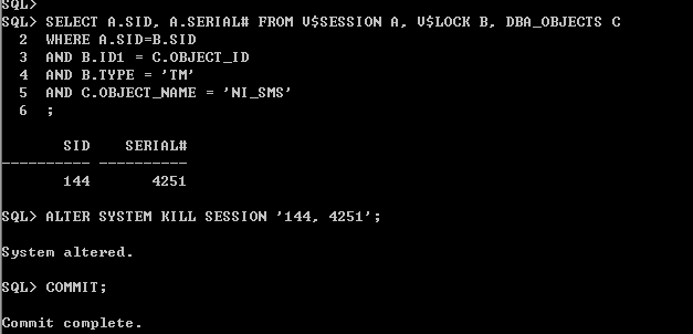 sid는 세션의 아이디이고 serial#은 세션의 일련번호이다. 구하고 싶다면 아래 명령어를 사용한다.