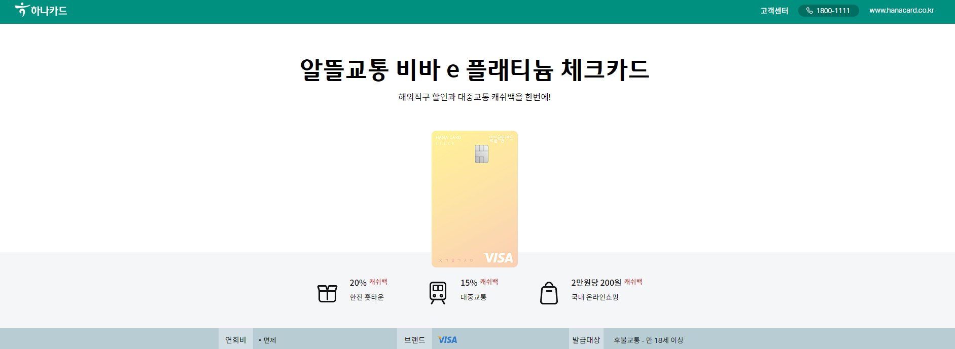 [하나] 알뜰교통 비바 e 플래티늄 체크카드