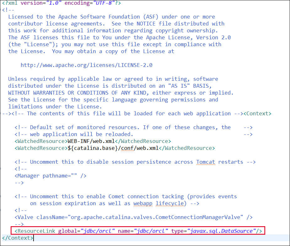 <ResourceLink global="jdbc/orcl" name="jdbc/orcl" type="javax.sql.DataSource"/>