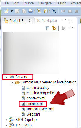 이클립스에서 [Servers] - [Tomcat v6.0 Server at localhost-config]에 있는 server.xml 파일을 연다.