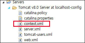 이클립스에서 [Servers] - [Tomcat v6.0 Server at localhost-config]에 있는 context.xml 파일을 연다.