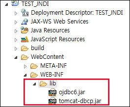 tomcat-dbcp.jar와 ojdbc6.jar 파일을 [WebContent] - [WEB-INF] - [lib] 폴더에 집어 넣는다.