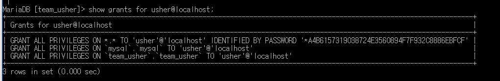 show grants for usher@localhost;