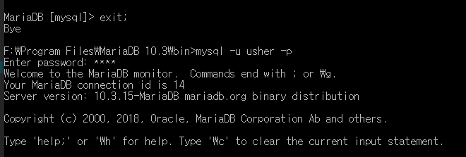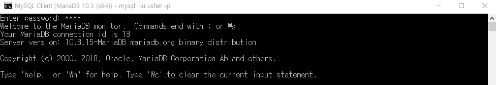 mysql -u usher -p