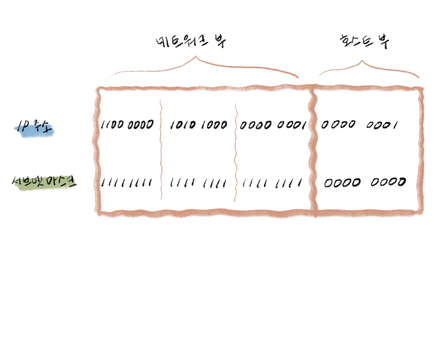 '1'은 네트워크부를 나타내며, '0'은 호스트부를 나타낸다.