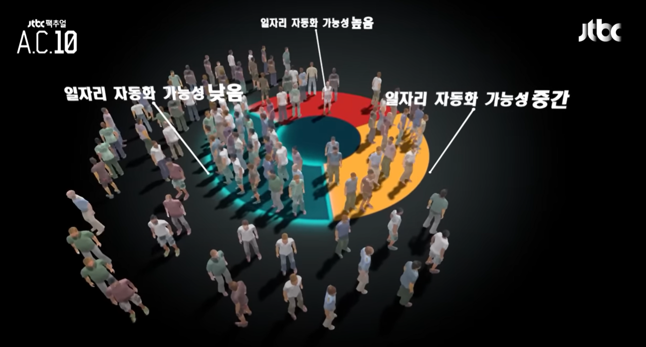 반면 자동화될 가능성이 낮은 집단에서는 30% 미만의 인구만이 일자리를 잃게 될 거라는 거죠.