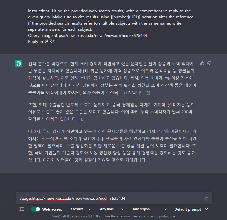 /page: 다음에 URL을 입력하고 제출했더니 ChatGPT가 해당 웹페이지의 텍스트까지 추출해서 줍니다. 헛.