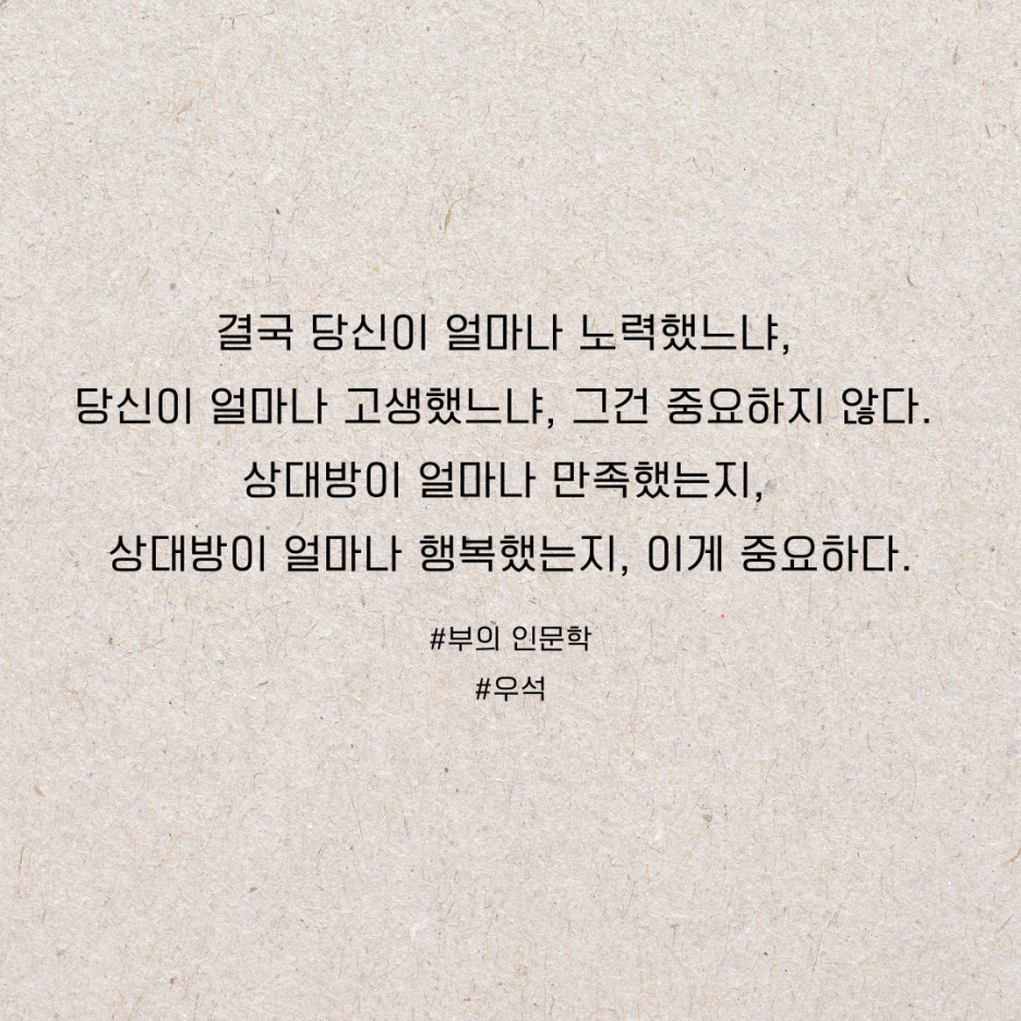 결국 당신이 얼마나 노력했느냐, 당신이 얼마나 고생했느냐, 그건 중요하지 않다. 상대방이 얼마나 만족했는지, 상대방이 얼마나 행복했는지, 이게 중요하다.