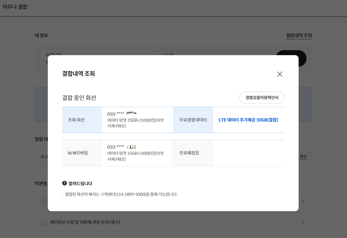 매달 10GB 데이터를 추가로 제공받고 있네요.