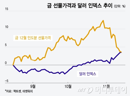 [앵커]올해 들어 랠리를 펼치면서 사상 최고가를 경신했던 금값이 최근 가파른 하향곡선을 그리고 있습니다.트럼프의 대선 승리가 흐름을 바꿨다는 분석이 나오는데요.김기호 기자, 금값이 얼