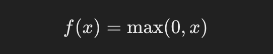 ReLU 함수의 수학적 정의는 매우 간단합니다. 주어진 입력 x에 대해, 함수는 다음과 같이 정의됩니다:
