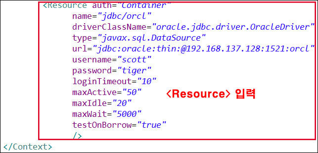 그리고 </Context>위에 <Resource> 부분을 추가해 준다.